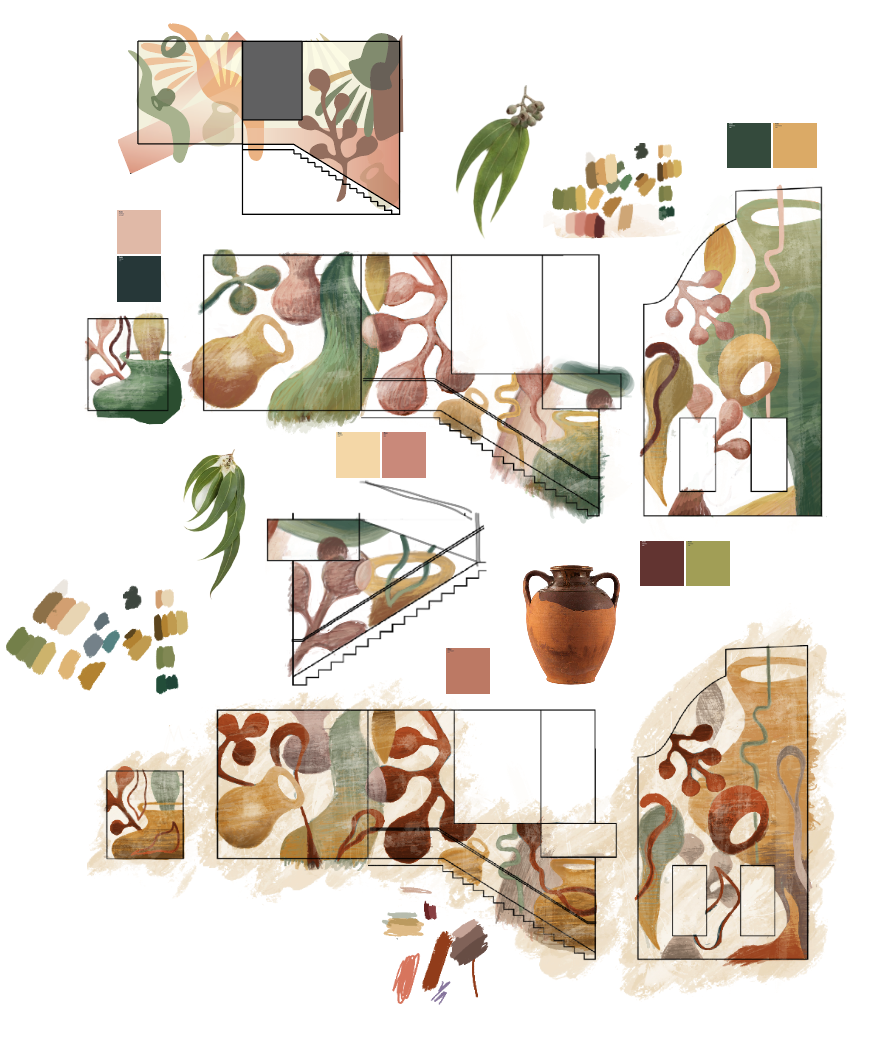Located in the heart of Parramatta, Commercial Hotel has been serving its community for over 100 years, and in 2024 aims to make some grand refurbishments. To honor their legacy, we at Studio Mielo created a mural with tactile, organic quality, using layered forms and natural hues that resonate with the hotels aesthetic and embrace of change.